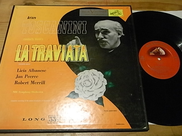2982 历史录音威尔第茶花女,托斯卡尼尼,RCA美国阴影狗只有单声道,NM—至NM,盒装2LP100元