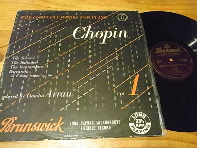 3104 少见阿劳早期演奏肖邦录音第一二两集,BRUNSWICK英国首版只有单声道,EX+(轻发丝痕基本不影响)2LP80元