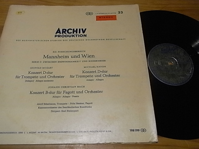 1273莫扎特父/海顿小号协奏曲,ARCHIV德国红标首版ALLE,封套边沿轻磨损,唱片NM—至NM,90元▼