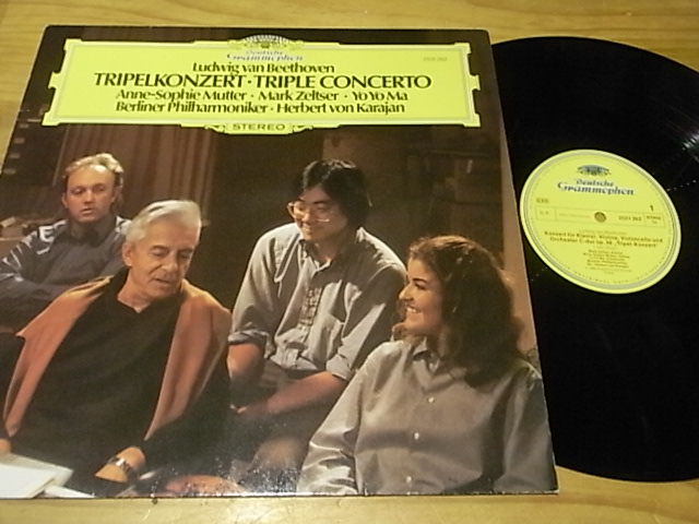 1336贝多芬三重协奏曲,穆特/马友友/泽尔策/卡拉扬,DG德国首版,NM—至NM(很轻微痕不影响),80元▼
