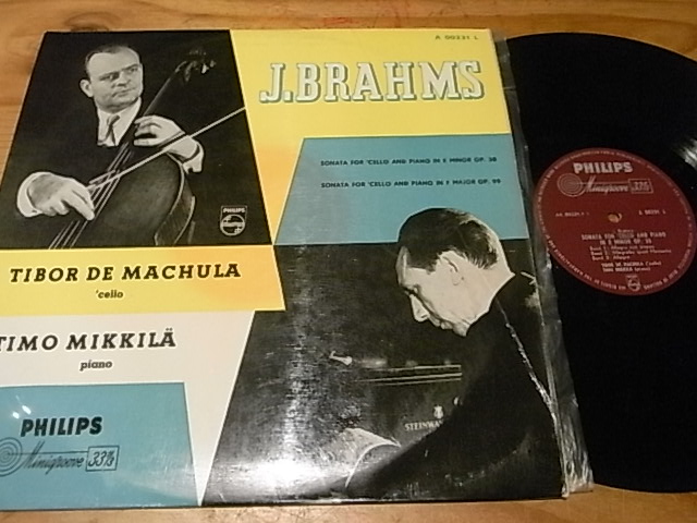 2948 少见历史录音,布拉姆斯大提琴奏鸣曲,匈牙利大提琴家马库拉/MIKKILA,菲利浦荷兰最早首版只有单声道,盘芯一点突起,播放影响不大,唱片NM—至NM,100元
