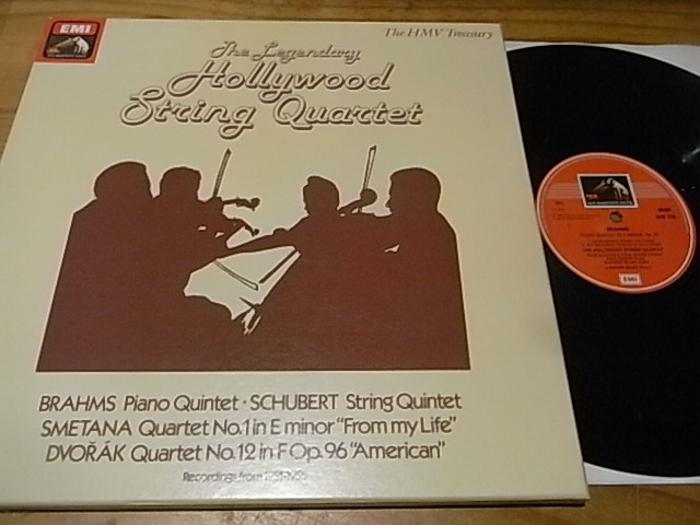 2953 传奇的好莱坞弦乐四重奏组(布拉姆斯/舒伯特/斯梅塔纳/德沃夏克),EMI英国版只有单声道,NM,盒装3LP150元