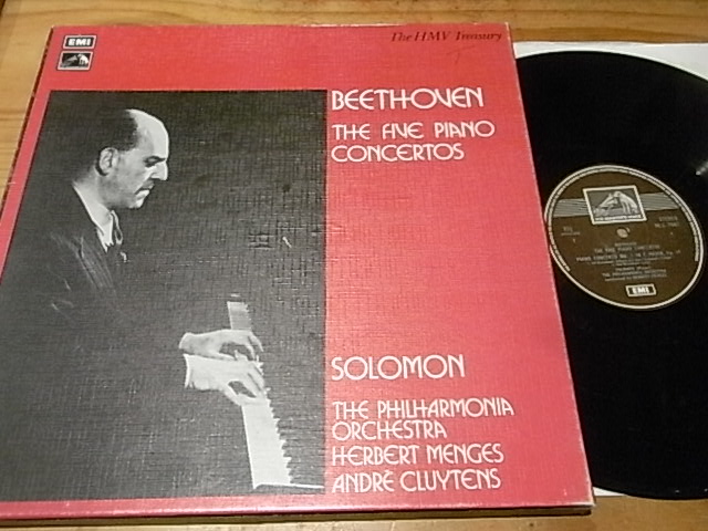 2977 历史录音名版贝多芬5首钢琴协奏曲,所罗门/克鲁伊坦/门格斯,EMI英国版,NM—至NM,盒装4LP150元