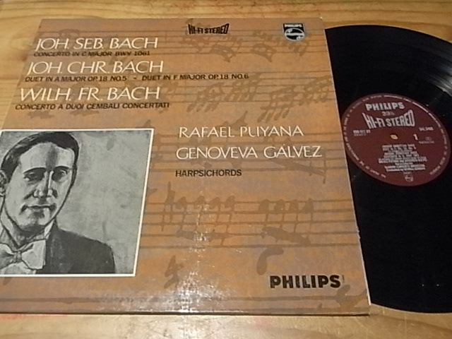 2969 巴赫家族双大键琴独奏及协奏曲,普约纳/GALVEZ,菲利浦英国HIFI-STEREO首版,NM—(盘面干净,一面有纸袋印痕不影响),70元
