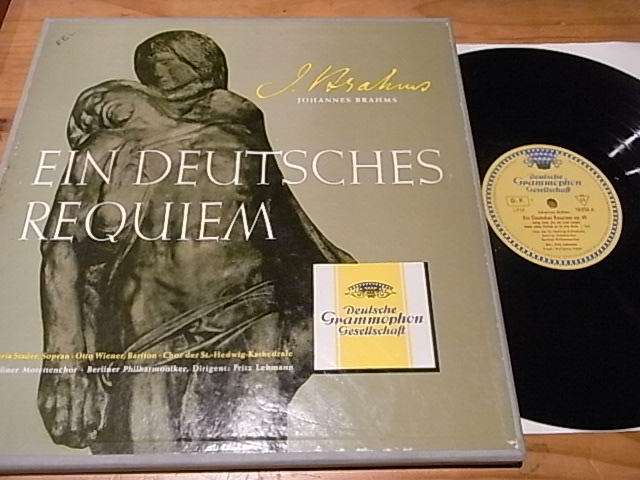 2103 历史录音名版布拉姆斯德意志安魂曲,莱赫曼,DGG德国大禾花首版只有单声道,NM—至NM,盒装2LP110元